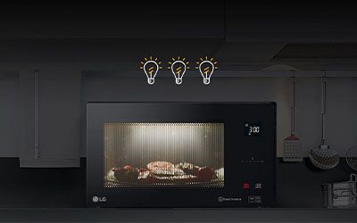 The interior white LED lamp on the NeoChef™ oven is 3 times brighter and more energy efficient than the incandescent light on other LG microwave ovens.1