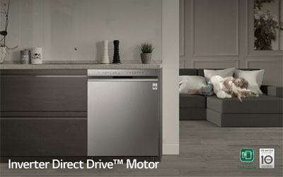 LG Built-Under dishwashers fit beneath your counter top and provide a neat finish to your cabinetry with the base of the dishwasher designed to be concealed behind your kitchen cabinet kick-plate for a seamless finish. Unlike Free Standing dishwashers, which can be taken with you when you move, built-in dishwashers are installed into your dishwasher cavity, and usually built into the kickboard design.