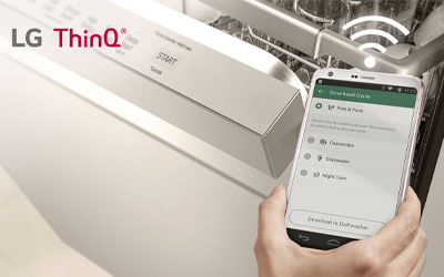 LG QuadWash® dishwashers come with ThinQ® technology, so you can download new wash cycles, diagnose problems and even get notifications on your smartphone.