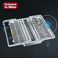 Miele has improved the cutlery tray, so it can now also accommodate even small items such as espresso cups. The 3D MultiFlex tray1 has a sunken central section and two side sections.