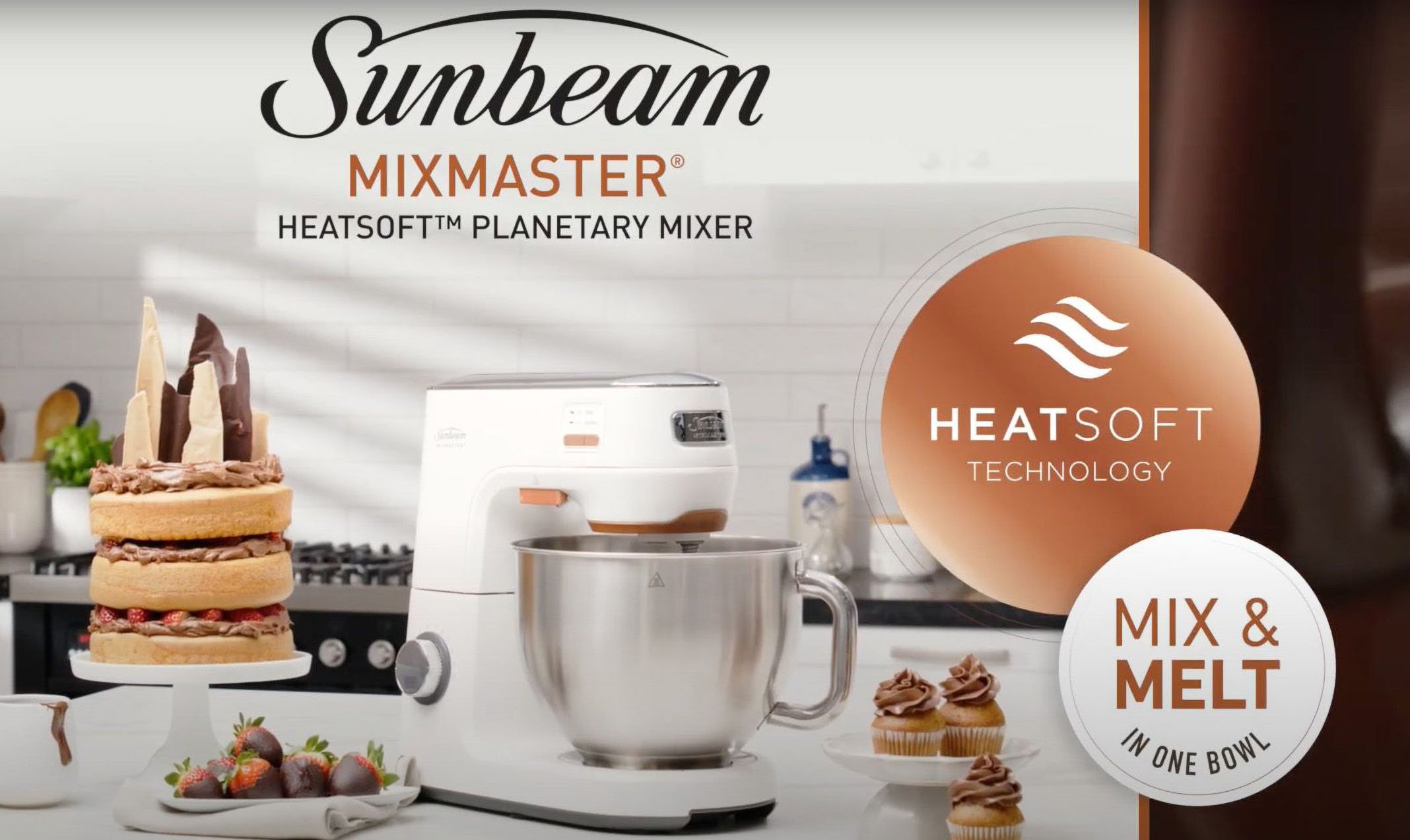 Discover a new way to mix and melt with Sunbeam Mixmaster® HeatSoft™ Planetary Mixer! Get superb melts and mix creamier batters all in one bowl with the mixer's revolutionary HeatSoft™ technology, the new secret to perfect bakes. Using gentle heat whilst mixing, bring fridge cold butter to room temperature faster; and melt or temper chocolate to perfection every time.
