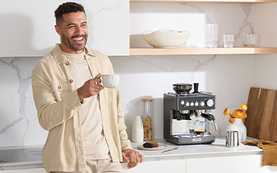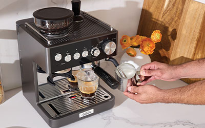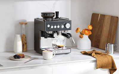 Get high performance starting with a built-in conical burr grinder plus Tap & Go auto dosing to produce fresh grounds in accurate amounts for a single or double espresso. Extract maximum espresso flavour with a 58mm commercial size group head and preset single or double shot extraction. With beautifully steamed milk, enjoy full flavoured espresso in every cup. When it's time to clean your machine, simply press one button.