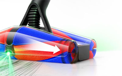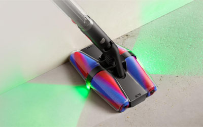 Dyson PencilVac FluffyconesTM cleaner head reveals dust in every direction - nothing left behind.