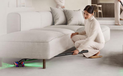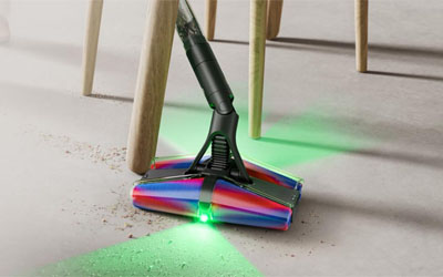 The new format of this stick vacuum cleaner flattens to 95mm to reach under sofas and low furniture.