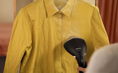Everything you own can now be ready to wear in a flash with Philips Handheld Steamer 7000 Series. Its adjustable head and pointed steam plate tip remove creases quickly and comfortably at any angle, with OptimalTemp to guarantee no burns.