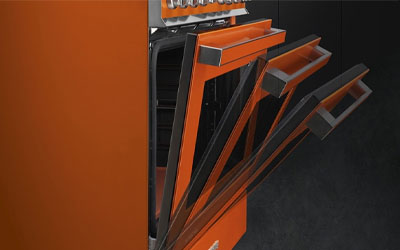 The new soft-close mechanism on Smeg’s oven doors ensures a two-stage soft and quiet close. Smeg’s quality hinges also ensure the door will not drop on opening, an intrinsic safety feature.