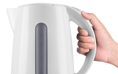 Wake up to a delicious cuppa with our robust and lightweight Rise Up Kettle. The Fast boil 2200W immersed element makes up to 7 standard cups with one boil.