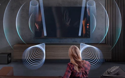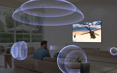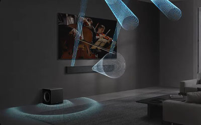 SpaceFit Sound Pro enables you to enjoy optimal sound and bass. With heightened clarity tailored to your viewing environments, it analyses room reverberations solely from your soundbar and subwoofer.6