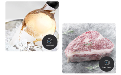 At the touch of a button, Power Cool blows intensely cold air into the fridge, so foods and drinks are chilled quickly. And Power Freeze delivers a fast blast of cold air into the freezer. It’s great for freezing or firming up frozen food, like ice cream, and making more ice.