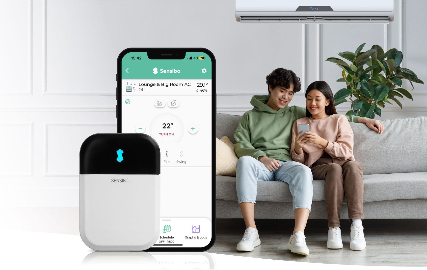 Sensibo is the ultimate device to control your split system and make it smart. With Sensibo you will be able to control, monitor, automate and save energy. In one app control many devices, and share your devices with your family at home and colleagues in the office.