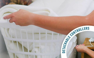 Detachable controls and waterproof elements allow the blanket to be easily washed by hand or machine.