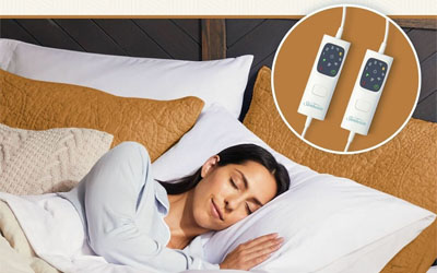 Left and right controllers allow for personalised settings on each side - select from 6 heat levels and automatic switch off after 1, 3 or 9 hours.