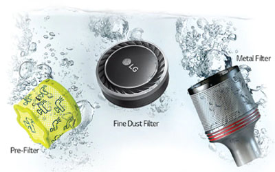 Easily maintain your vacuum by removing and washing your filters. Over time, dirt builds up on the filters inside your vacuum. The metal filter, cloth pre-filter and fine dust filter can all be removed and washed with water to clean dirt away. Leave the filters to completely dry before placing them back in the vacuum.