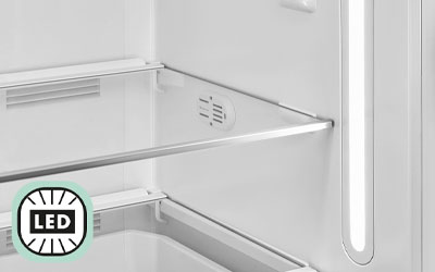 Bright LED light strips have been applied to both sides of the fridge to provide optimal illumination and total visibility of the interior. These are more energy efficient and longer lasting than traditional bulbs.
