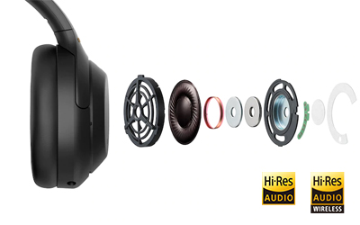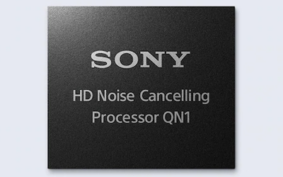 Dual noise sensor technology, featuring two microphones on each earcup, captures ambient noise and passes the data to the HD Noise Cancelling Processor QN1. Using a new algorithm, the HD Noise Cancelling Processor QN1 then applies noise cancelling processing in real time to a range of acoustic environments. Working together with a new Bluetooth® Audio SoC (System on Chip), it senses and adjusts to music and noise signals, as well as acoustic characteristics between the driver unit and ears, at over 700 times per second.