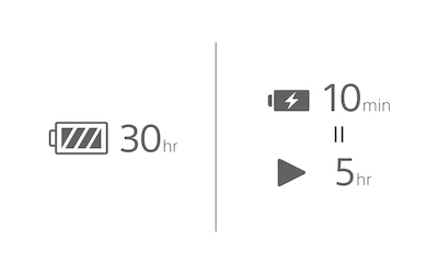 With a huge 30 hours of battery life you’ll have enough power even for long trips. And if you need to top up in a hurry, you can get 5 hours’ worth of charge after just 10 minutes with the optional AC adapter.