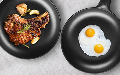 The Skillet is two times more durable* than traditional non-stick cookware, thanks to the unique diamond particles infused coating creating a strong interlocking matrix layer at the base of the pan. You can expect superior non-stick performance when cooking.