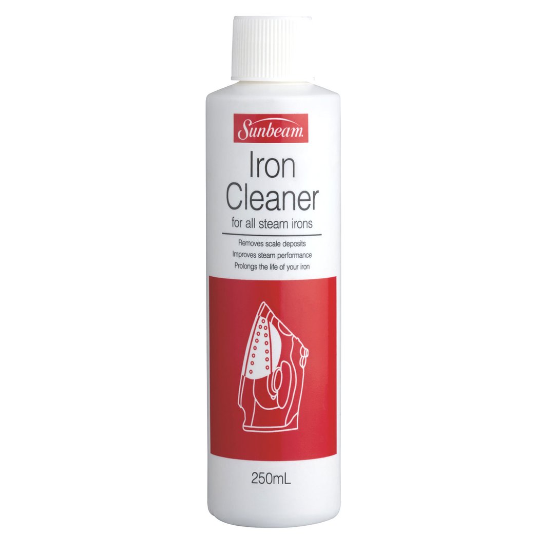 - The Sunbeam SR0300 iron cleaner removes natural scale deposits from your iron to maintain optimal steam performance and prolong appliance life. This 250ml concentrated formula effectively dissolves mineral buildup that can clog steam vents and reduce efficiency over time. Regular use helps restore your iron to peak operating condition, ensuring consistent steam output for better ironing results. Suitable for all steam iron brands and models, making it an essential maintenance product for households that iron regularly.