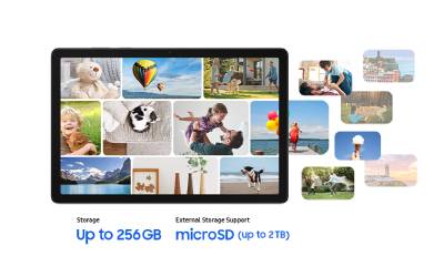 Save everything that matters with the Galaxy Tab A11+'s ample memory and storage capacity. With up to 8 GB of memory and 256 GB of storage, it enables fast, seamless multitasking and support for large files. If needed, you can even expand storage up to 2 TB with a microSD card.