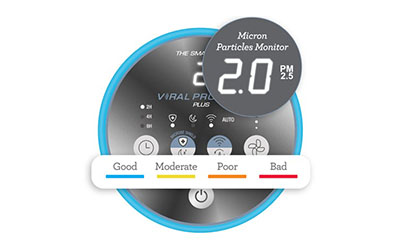 Dual display with real time updates via PM2.5 Micron Monitor & Live Purity Visual Indicator, auto adjusts the performance according to air quality detected.