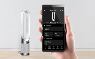The MyDyson™ app lets you monitor your homes air quality from anywhere, set schedules, and more. Control hands-free, using compatible voice services.3